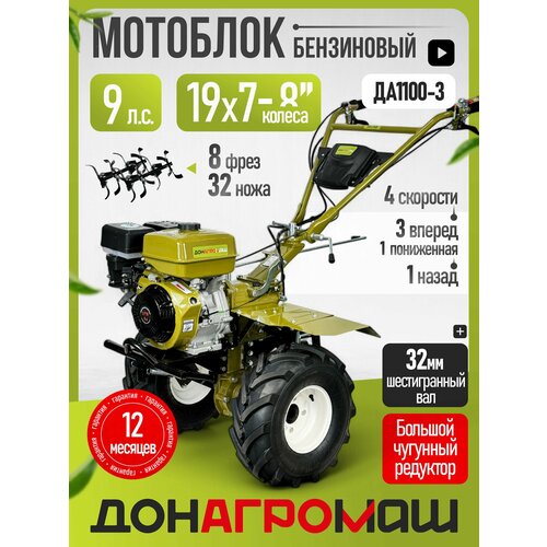 Донагромаш Мотоблок бензиновый редукторный ДА1100-3 (9 л. с, 3 вперед / 1 назад, колеса 19x7-8)