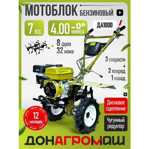 Донагромаш Мотоблок бензиновый редукторный ДА1000 (7 л. с, 2 вперед / 1 назад, колеса 4х8)