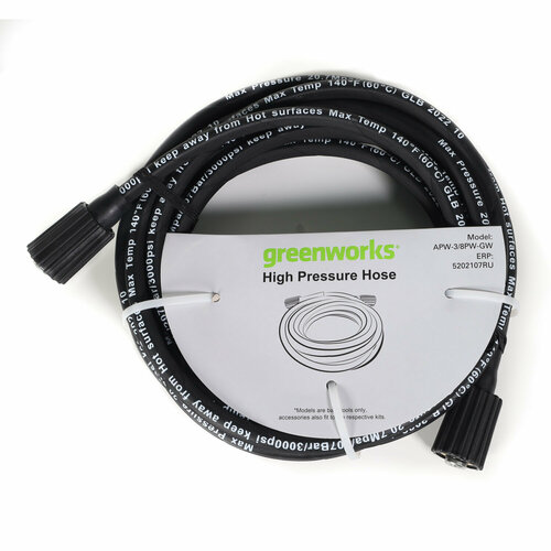 Шланг Greenworks 5202107 для автомоек, армированный, резиновый, 7,6м, до 207 бар