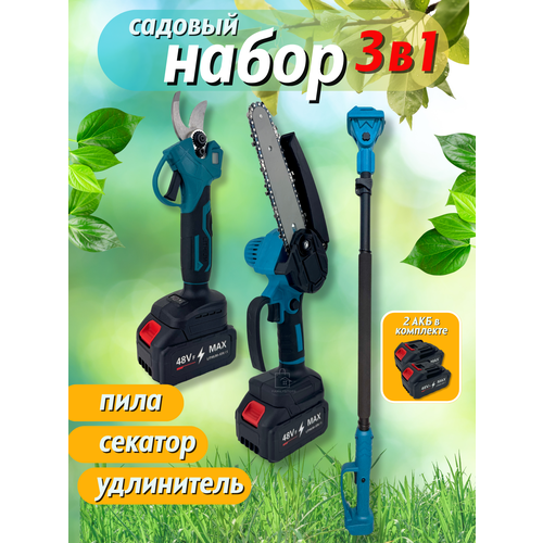 Высоторез телескопический аккумуляторный набор 3 в 1: секатор-сучкорез и мини-пила с телескопической ручкой с 2 акбм