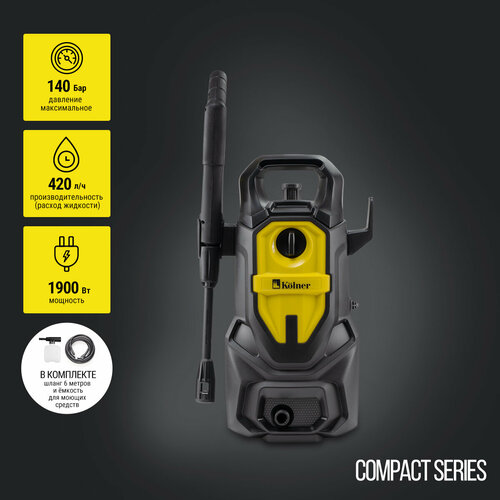 Мойка высокого давления KOLNER K160, 1900Вт, 160бар, 420л/ч, алюминиевая помпа черный, желтый, черный, оранжевый