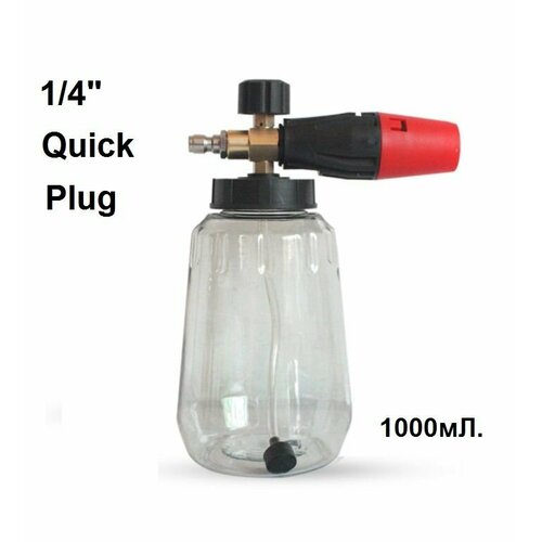 Пенная насадка (пеногенератор) из латуни с прозрачной колбой для минимоек Kvazarrus, Denzel, HUTER и Ресанта (1000 мл.)
