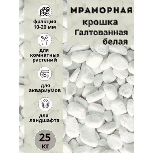 Мраморная крошка белая галтованная 10-20 фракция (25кг) для комнатных и садовых растений