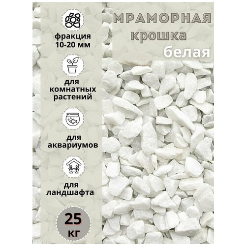 Мраморная крошка фракция 10-20мм белая мешок (25кг) Грунт натуральный для комнатных и садовых растений