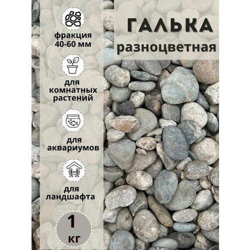 Галька разноцветная(пестрая) 40-60мм (1кг) для комнатных и садовых растений