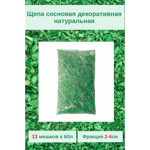 Щепа сосны зеленая для декора сада и мульчирования. Фракция 2-4см Комплект 13 мешков х 60л.