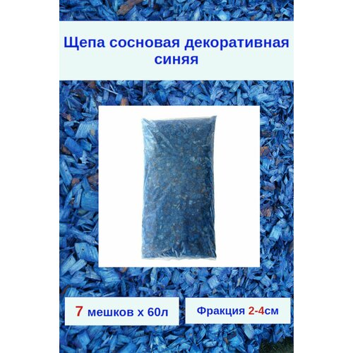 Щепа сосны синяя для декора сада и мульчирования. Фракция 2-4см Комплект 7 мешков х 60л.