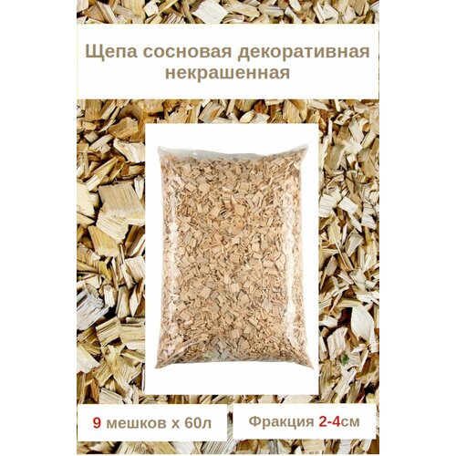 Щепа сосны натуральная некрашеная для декора сада и мульчирования. 2-4см Комплект 9мешков х 60л.