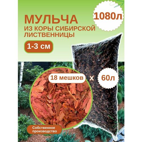 Мульча из коры лиственницы сибирской мелкая (1-3 см) ЭкоТорг, 60 л. Комплект 18шт