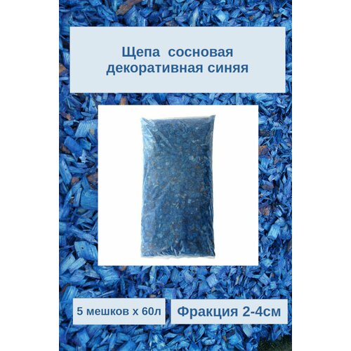 Щепа сосны синяя для декора сада и мульчирования. Фракция 2-4см Комплект 5 мешков х 60л.