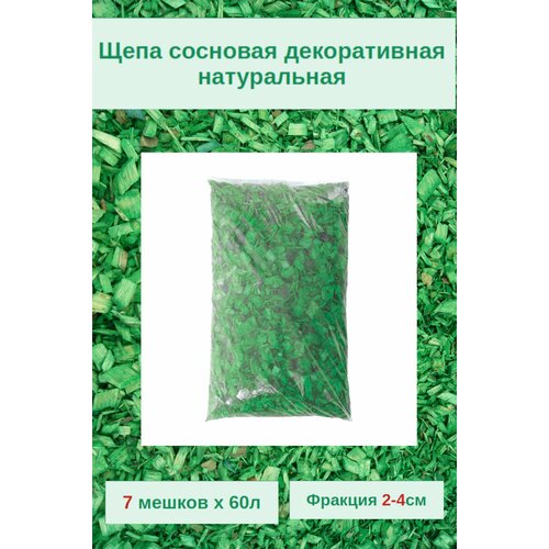 Щепа сосны зеленая для декора сада и мульчирования. Фракция 2-4см Комплект 7 мешков х 60л.
