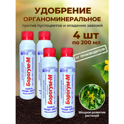 Комплексное органоминеральное удобрение "Борогум- М" против пустоцветов и опадения завязи, 4 флакона * 200мл