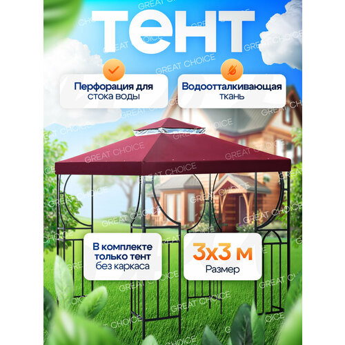 Наружный тент-крыша с двойным верхом 3х3м для беседки, винно-красный