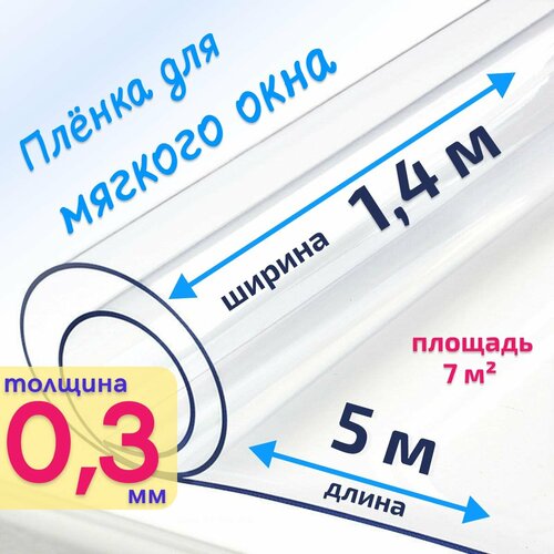 Пленка ПВХ для мягких окон прозрачная / Мягкое окно, толщина 300 мкм, размер 1,4м * 5м