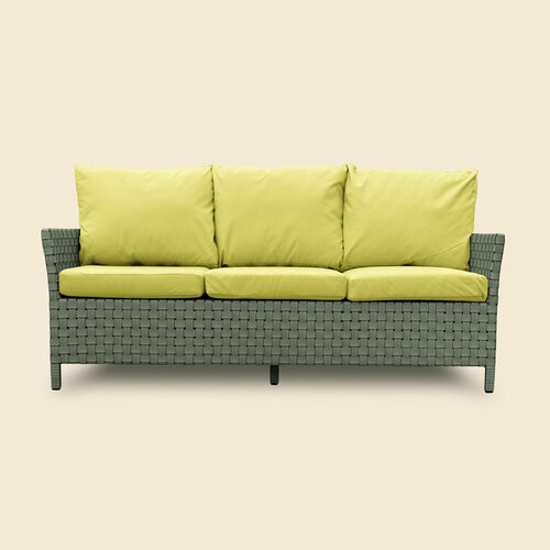 Диван плетеный из ротанга 3-х местный STILO, хаки, желтые подушки