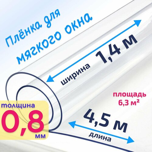 Пленка ПВХ для мягких окон прозрачная / Мягкое окно, толщина 800 мкм, размер 1,4м * 4,5м