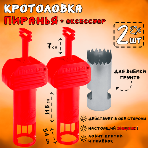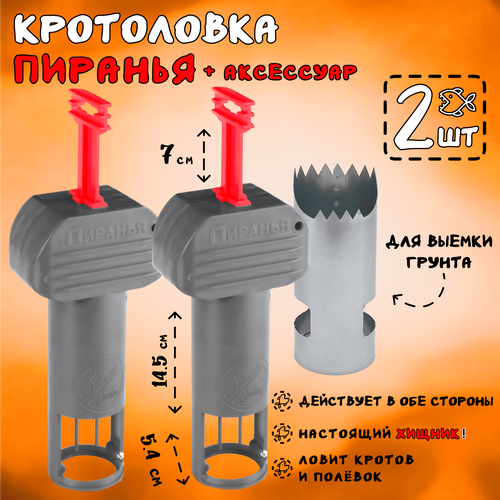 Кротоловка Пиранья, капкан для кротов, мышеловка, цилиндр для выемки грунта, Планета Садовод, Серый/Красный, 2 штуки