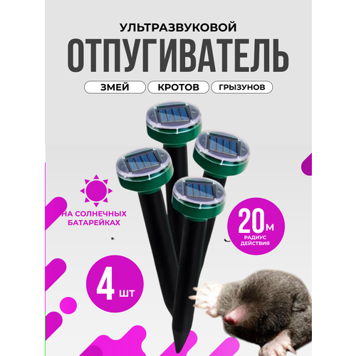 Ультразвуковой отпугиватель вредителей кротов, мышей, грызунов, землероек, крыс, змей на солнечных батареях, набор 4 шт