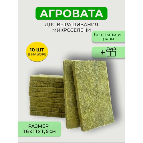 Агровата / минеральная вата (16 х 11 х 1,5 см.) для выращивания микрозелени (10 матов в упаковке)