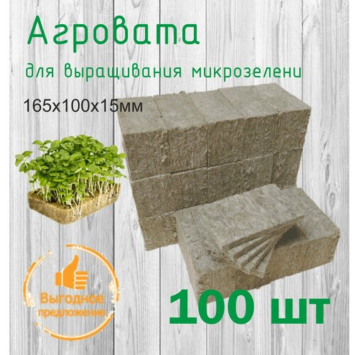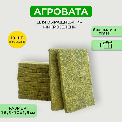 Агровата / минеральная вата (16,5 х 10 х 1,5 см.) для выращивания микрозелени (10 матов в упаковке)