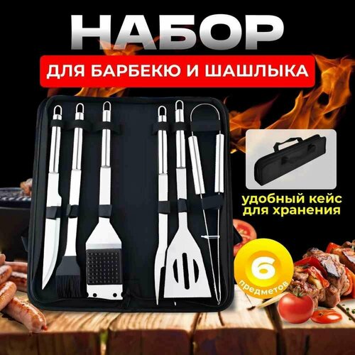 Набор инструментов для барбекю и гриля в чехле - 6 предметов от Shark-Shop