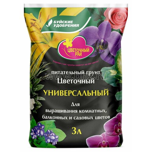 Грунт Буйские удобрения Цветочный рай для роз, бегоний, хризантем, 3 л, 1.2 кг