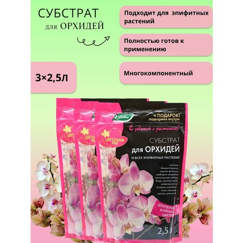 Грунт для орхидей субстрат готовый 3 упаковки по 2,5 л