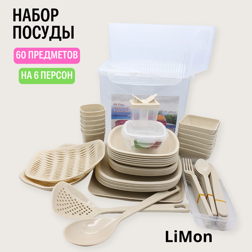 ABS, пластикНабор для пикника на 6 персон включает в себя 60 предметов, что делает его отличным выбором для больших компаний или семей.
