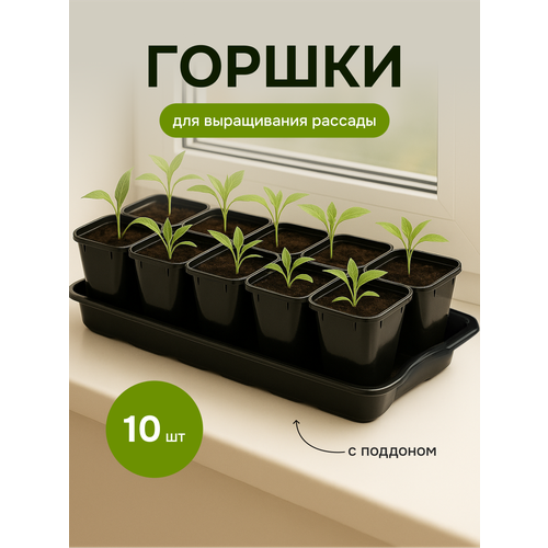 Стаканы для рассады, с поддоном, 0,3 л, комплект 10 шт. черные/серые