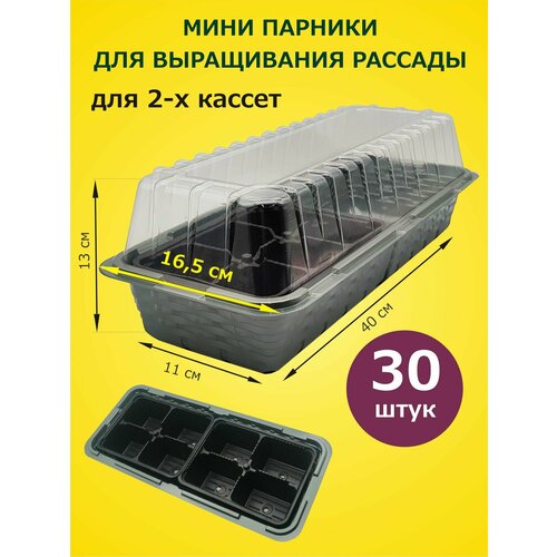 Мини парник для выращивания рассады х 30 шт, размер 39,5х17,5х8 см для 2-х вставок кассет / мини теплица домашняя