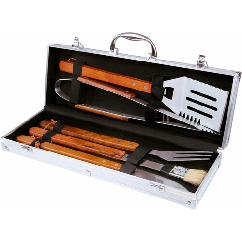 Набор для барбекю (BBQ) гриля и шашлыка, 5 предметов, из нержавеющей стали, в подарочном металлическом кейсе