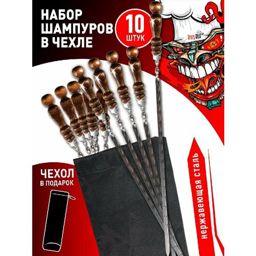 Набор шампуров 62 см 10 штук в чехле / Шампуры из нержавеющей стали с деревянной ручкой из бука