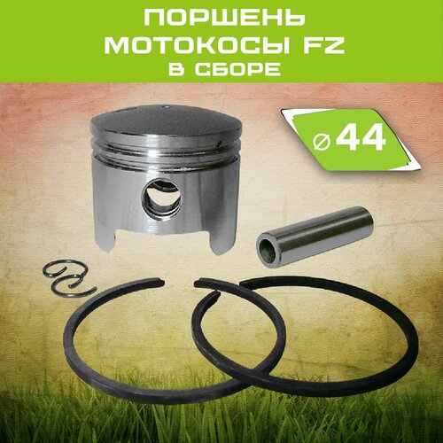 Поршень мотокосы FZ 52сс, 44 мм. (кольца, палец d10мм, стопор. кольца)