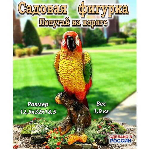 Садовая фигурка попугай на коряге, декор для дачи, сада и огорода
