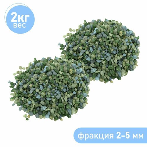 Натуральный грунт для кактусов, суккулентов и растений, Zoo One, природный материал, "Морская волна/Изумруд", (фракция 2-5 мм), 1 кг, 15-1990
