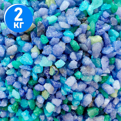 Натуральный грунт для кактусов, суккулентов и растений, Zoo One, природный материал, "Синий+кварц", (фракция 2-5 мм) 1 кг, GR15-0621 белый, синий