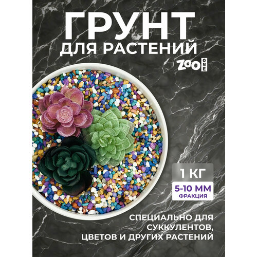 Натуральный грунт для кактусов, суккулентов и растений, Zoo One, природный материал, "Смесь/Калейдоскоп", (фракция 2-5 мм), 1 кг, 15-1989