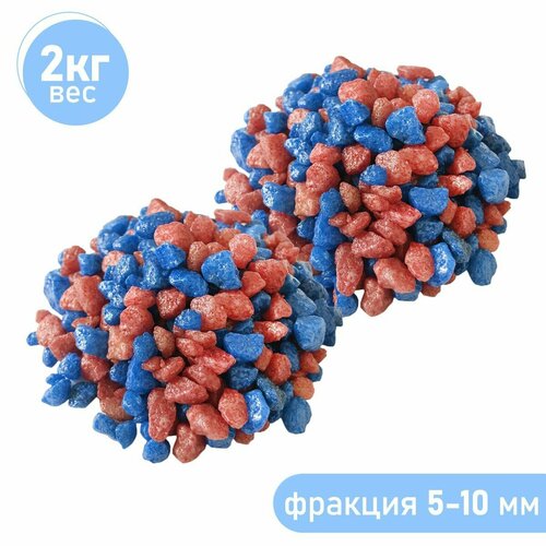 Натуральный грунт для кактусов, суккулентов и растений, Zoo One, природный материал, "Синий+бордо", (фракция 5-10 мм) набор 2 шт по 1 кг, GR15-0153-2