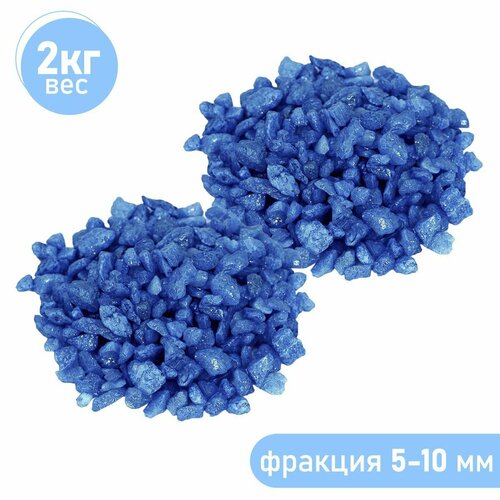 Натуральный грунт для кактусов, суккулентов и растений, Zoo One, природный материал, "Синий/Сапфир", (фракция 5-10 мм) набор 2 шт по 1 кг, GR15-0006-2