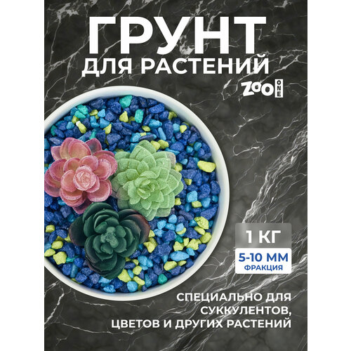 Натуральный грунт для кактусов, суккулентов и растений, Zoo One, природный материал, "Синий+кварц", (фракция 5-10 мм) набор 2 шт по 1 кг, GR15-0622-2