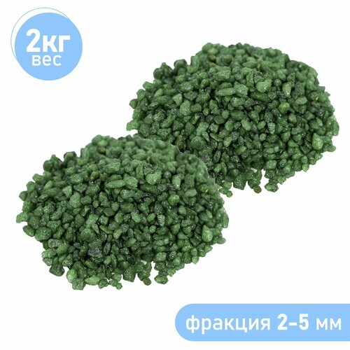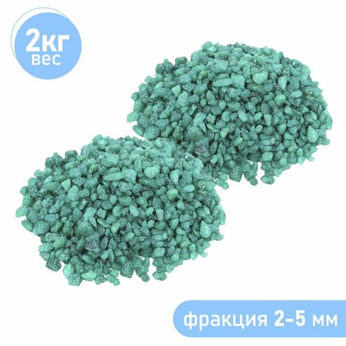 Натуральный грунт для кактусов, суккулентов и растений, Zoo One, природный материал, "Зелёный/Малахит", (фракция 2-5 мм) набор 2 шт по 1 кг, GR15-1987-2