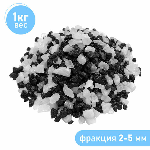 Натуральный грунт для кактусов, суккулентов и растений, Zoo One, природный материал, "Чёрный+кварц", (фракция 2-5 мм) 1 кг, GR15-0495