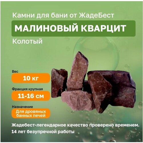 Малиновый кварцит колотый Шокша ЖадеБест средняя фракция 7-14 см для бани и сауны 20 кг в экологичной упаковке