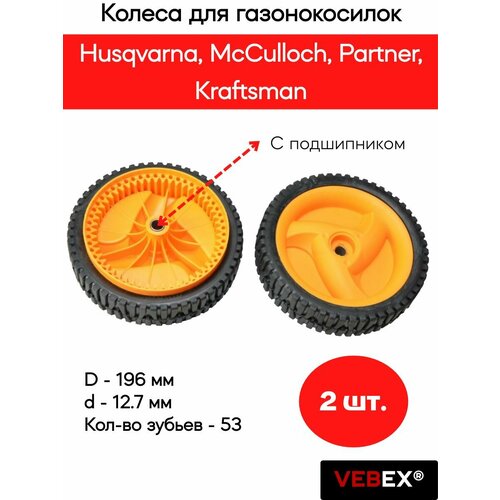 Два колеса для газонокосилки 196*45*12,7мм (для Husqvarna, Partner, McCulloch, Kraftsman)