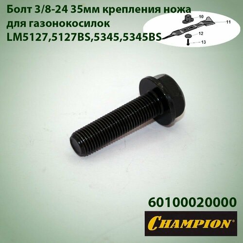 Болт 3/8-24 35мм крепления ножа для газонокосилок LM5127,5127BS,5345,5345BS, CHAMPION, 60100020000
