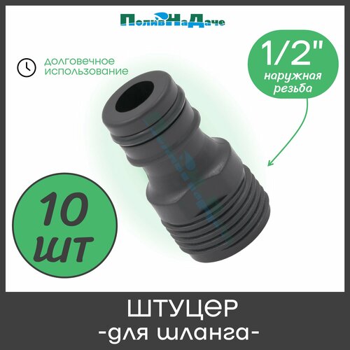 Штуцер для шланга с наружной резьбой 1/2", пластик. Упаковка 10 шт.