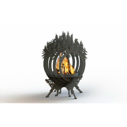 Костровая чаша Олени диаметр 80 см с зольником и защитной сеткой / Чаша для костра FIRE-HOUSE