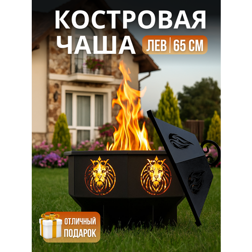 Костровая чаша «Лев» с крышкой, 65 см, сталь 3 мм, черная