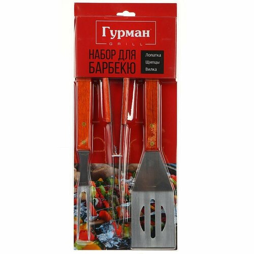 Набор для барбекю нерж сталь, 3 пр, лопатка 38см, щипцы 36см, вилка 36.5см, Гурман, CB003