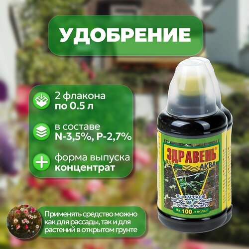 Удобрение Здравень Аква жидкое комплексное 2 флакона по 0,5 л для рассады овощных культур и садовых цветов. Ускоряет развитие, улучшает приживаемость рассады при высадке